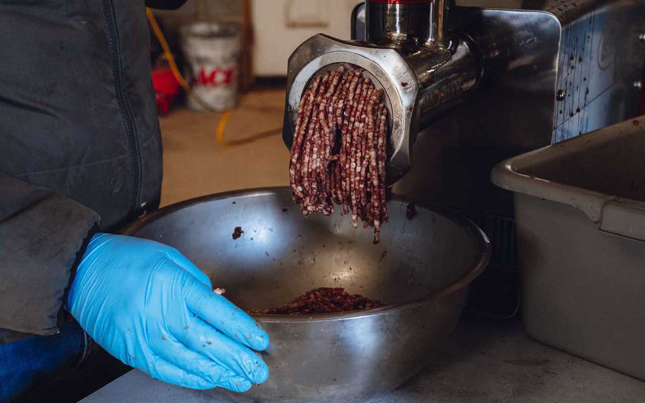 The annual three-day event began on a cold Friday in February where we first measured out the 85 pounds of cubed venison while mixing in the pork fat.